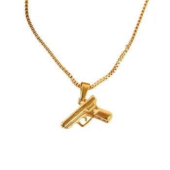 18K Gold Plated Small Gun Shape Pendant Necklace Fashion Hip Hop Pistol Charm for Men Stainless Steel Link for Parties