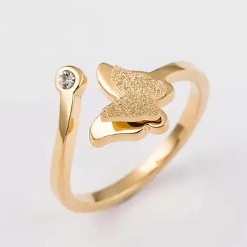 Open Adjustable Finger Ring Multicolor 18K Gold Stainless Steel Butterfly Rings