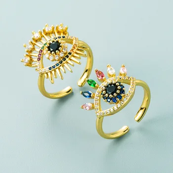 Stylish Women's Gold-Plated Copper Ring New Design Hip-hop Jewelry with Zircon Eyes Luxury Wedding Occasion