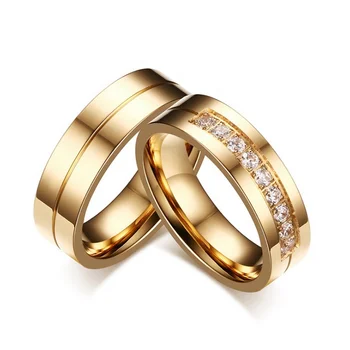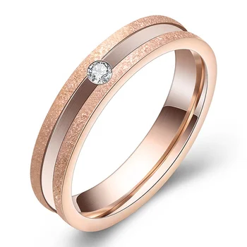 Fashion Simple Stainless Steel Matte Gold Ring Diamond Couple Wedding Rings Men and Women Jewelry