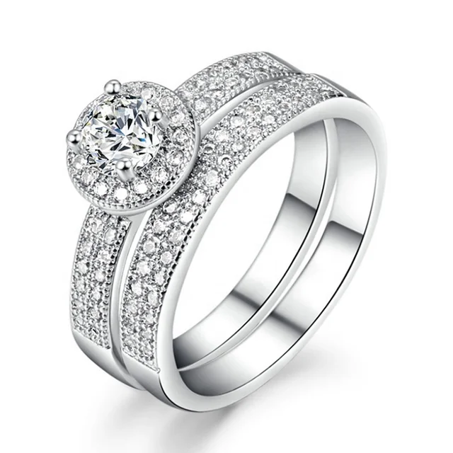 High Quality Double Layer Wedding Rings Women White Gold Diamond Ring