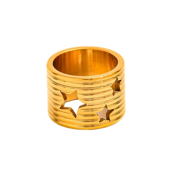 JINYOU 966 Personalized Stainless Steel Hollow Geometric Wide Ring 316L for Rust Proof Texture Fashionable Wedding/Engagement