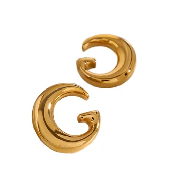 New Trendy 18K Gold Plated Stainless Steel Geometric Unusual Jewelry Prevent Allergy Big G Letter Smooth Surface Stud Earrings