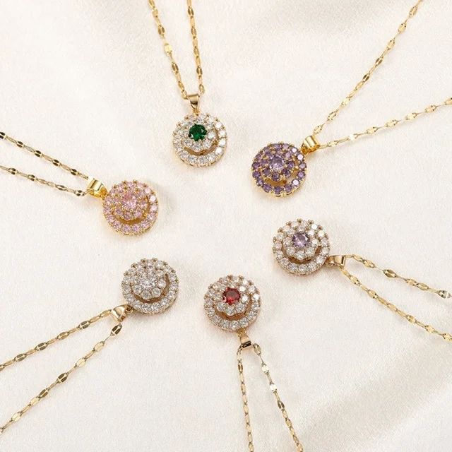 Fashion Korean Multicolor Rotatable Round Diamond Pendant Necklace